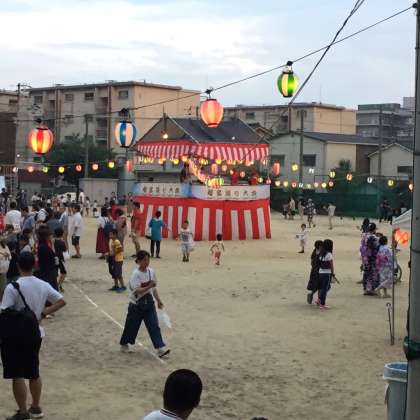 8月31日(土)。午前中はとてもいい天気でしたが、午後から激しい雨。「盆踊りどうなるん?」主催者側は「大丈夫や。やる。」言い切りました。しかし、開始すると雨が止みました。すごかったです。子どもも大人もとても喜んでいました。最後にちょっと降ったくらいでした。福地域、持っています!