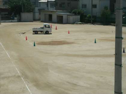 とても暑い日が続いています。子どもたちが運動場で遊ぶのも危険な状態になっています。そんな中、運動会の取組も進んでいます。今日は運動場のメンテナンスをしてもらいました。土を平らにする作業です。