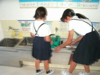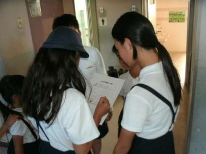 福小学校ではたてわり班活動に重点を置いて学校行事等、様々な活動を行っています。今週、お昼休みの清掃はたてわり班で行っています。6年生、5年生が中心となって、下級生と一緒に清掃をしています。最後は「後片付けはできましたか?」などと全員でチェックを行っています。下級生も上級生と掃除するのが楽しそうです。