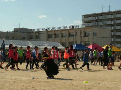 西淀中学校グラウンドにて、第6回西淀川区連合親善大運動会が開催されました。今日はとても天気も気候もよく、スポーツ日和です。14もの西淀川区内の地域が参加しました。開会式の後、中学校対抗リレー、徒競走(未就学児の部、小学校低学年の部、小学校高学年の部)、スプーンレース、小学校対抗リレー、玉入れ、綱引き、地域対抗リレーが行われました。