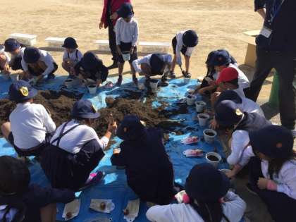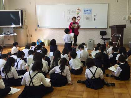 今日は1・2年生合同で、法務省人権擁護委員の先生に来ていただき、人権の花植えを行いました。チューリップを一人一鉢、そしてプランターにも植えました。いろんな色のチューリップは私たちと同じように、みんな一つずつ違うけど個性豊かに育っている、ということを「チューリップの花」の歌を歌って意識を持ちました。今みんなで植えたチューリップは校門の池の周りに並べています。4時間目には多目的室でみんなでお話を読み、人権の考え方を勉強しました。