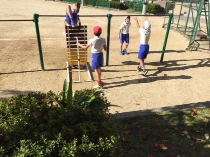 4年生は体育の授業で「さかあがり」の練習をしていました。友達と教え合ったり、器具を使ったりして一生懸命連数しています。大人になったら、その時に一生懸命練習したことを忘れてしまって、できることが普通になってしまっています。4年生は今を一生懸命がんばっています。