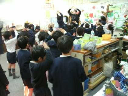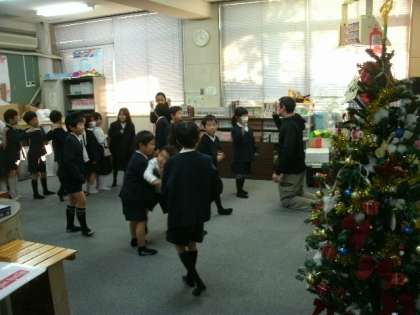 今日のいきいき教室では、英会話をみんなで楽しみました。レイ先生がクリスマスの時期によく使う英語を教えてくれたり、ゲームをしてくれたりしました。特に1・2年生の人は、学校では外国語(英語)の授業がまだないので、とても楽しんでいます。
