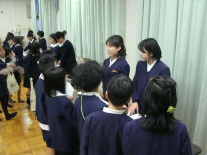 3年生と5年生は多目的室にて交流会を行いました。来年4年生は各種委員会に所属することになります。現在中心となっている5年生から、各委員会の仕事内容などを教えてもらいました。自分たちで作ったリーフレットを使って説明する5年生は、とても凛々しかったです。