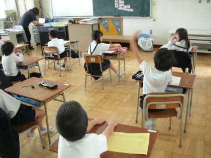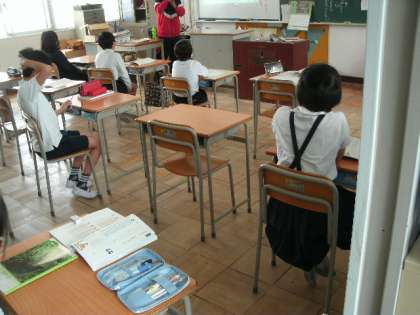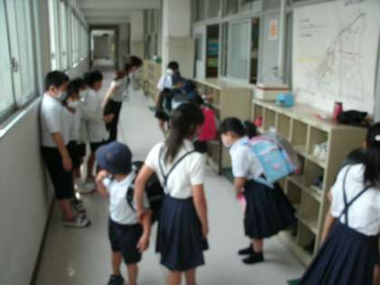 今日から6年生は午前中の3限ですが、授業を再開しました。久しぶりの授業で、少し固まっているのかな?真ん中は2年生の授業です。下は1年生のお迎えに来てくれた4年生です。とてもお兄さん、お姉さんに見えます。