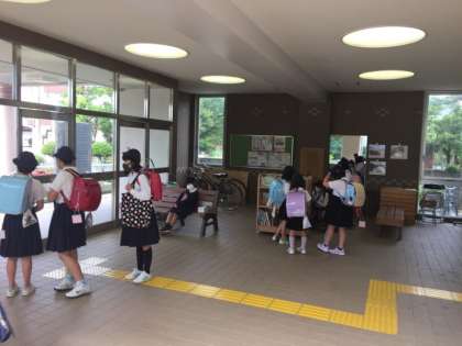 今年度から開門を8時10分にしています。子どもたちの中には早く学校へ来ること、競い合うことをしているみたいです。昨今の現状から密接を避けるためにも、8時10分から25分の間に登校するよう、お家でもお話をしてもらいますよう、お願いいたします。