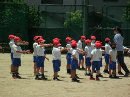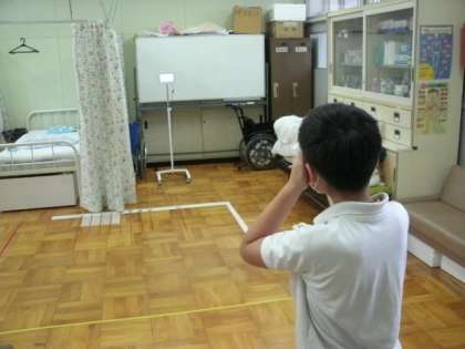 また、健康診断も再開しております。今日は5・6年生は視力検査を行いました。あと、体育は1年生の様子です。整列の練習をして、かけっこをしました。