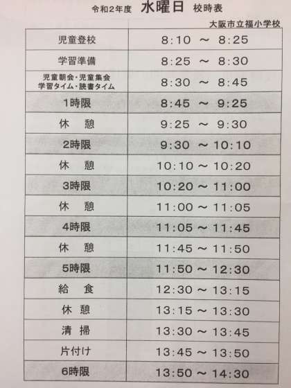 Sa Miyerkules, mayroong 6 40-minuto na mga klase. Nagtapos ang klase sa 14:30.