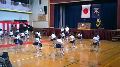 開式です。昨日短い時間で1年生と担任が打ち合わせをしました。本番では姿勢もよく、段取り通り入場しました。校長先生から、「一つのお願い、大きな声であいさつをしましょう。」とお話をしていただきました。在校生を代表して、6年生2名から「福小学校のお兄さんやお姉さんはやさしいので、安心してください」と、とても心強い「歓迎の言葉」をかけてもらいました。6年生、かっこよかったです。