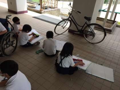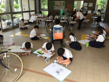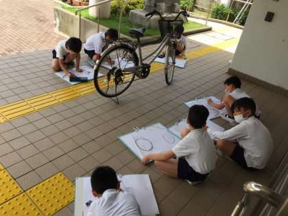 4年生の図工の様子です。自転車のスケッチをしています。それぞれのデザインに特徴があります。