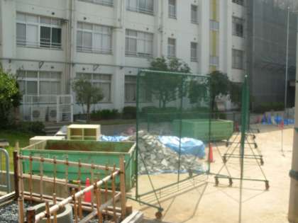 学校では、図工室の移転工事とブロック塀の改修工事が行われています。