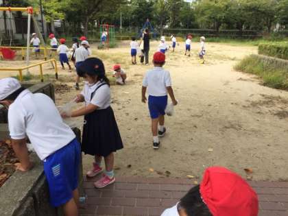 1年生は、今日の4・5時間目(水曜日は変則の時間割になります)に、緑陰道路と学校向かいの福町公園(子どもたちはライ公と呼んでいます)へ出かけました。生活科の「秋見つけ」の授業です。枯葉をたくさん拾う児童もいました。ドングリを見つけた児童もいました。福町公園ではかわいい花を見つける児童もいれば、「くっつき虫」にイライラする児童もいました。とても賑やかな時間でした。