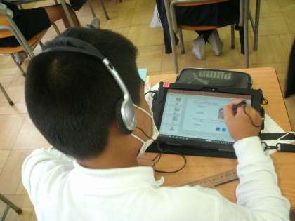 5時間目の5年生の英語の時間です。頻度(always,usually,sometimes,never)を文章で勉強しています。また、タブレットを使って、発音の練習もしています。今日の3年生と5年生の授業は福小学校の先生や教育委員会の方に授業を見てもらいました。
