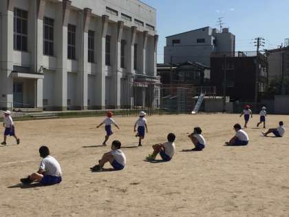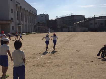 福小学校では今週はスポーツテスト週間となっています。各学年、いろんな体力測定を行っています。今日は、2年生と4年生、3年生と5年生、1年生と6年生がペアを組んで、50m走を行いました。特に1年生は初めてなので、6年生のサポートを受けて行いました。1年生は「本気出すで!」と走っていました。いい結果が出たでしょうか?
