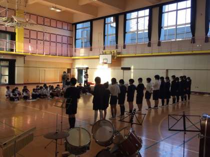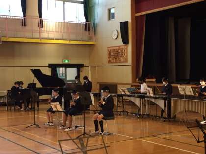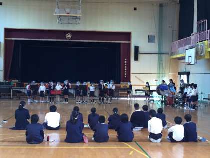今日の6時間目に、4年生と6年生は合同で音楽の授業を行いました。お互いに練習している合奏・合唱を披露しました。4年生は合奏を披露しました。とてもダイナミックで良かったです。6年生は合唱も披露しました。4年生は6年生の演奏がまとまっている、と感動していました。