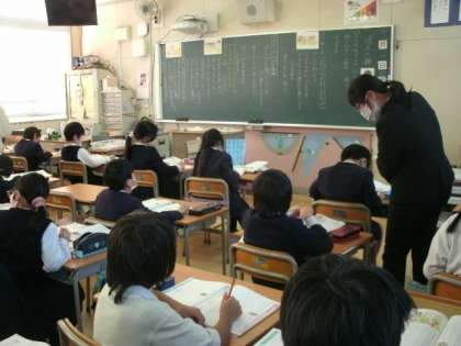 6時間目の4年生の道徳の授業の様子です。今日は学校の先生や他校の先生も来られて授業を見てもらいました。みんな、しっかりとした発言をしていました。