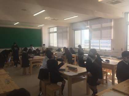 昨年度末に図工室の工事や物品の搬入が終わり、新図工室の移転が終了しました。3学期から授業で使用されるようになりました。とてもきれいなので、使うのがためらわれるくらいでした。ノコギリを使った授業を行っています。