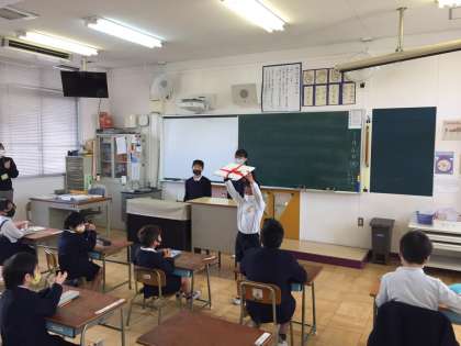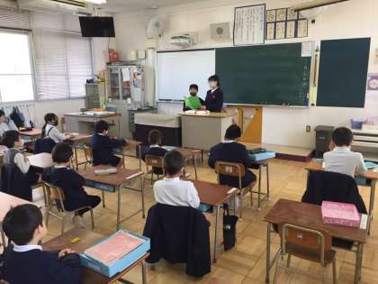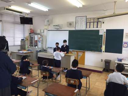 6年生の卒業が近づいています。今日は1〜5年生の教室で、「私たちが作りました。これで学校をきれいにしてください。」と贈呈式がありました。一生懸命気持ちをこめて作ってくれたんですね。