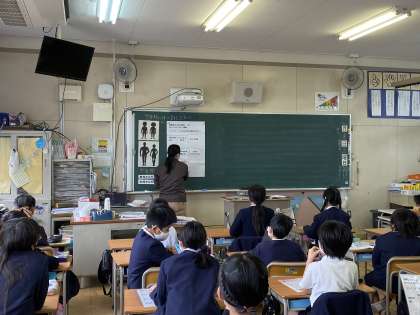 4年生の保健体育科の授業の様子です。「思春期の体の変化を知ろう」の単元です。授業の最初に「命の勉強をします」と話があり、みんな真剣に話を聞いています。クイズを交えながら、子どもたちが分かりやすくしています。お互いに意見を交わす場面もありました。