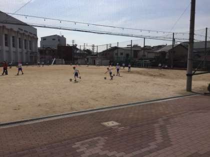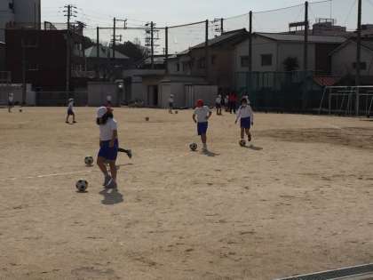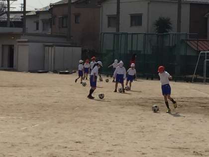 3年生の授業の様子です。サッカーの練習です。ボール運びは上手にできていますか?