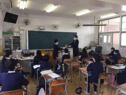 児童朝会の様子です。今年度最後になります。6年生が卒業したので、5年生の企画委員が司会をしてくれています。校長先生から卒業式のお話と5年生が受検した漢字検定の話がありました。看護当番の先生からは今週の目標は「今年度のまとめをしよう」とのお話がありました。校長先生からは5年生の児童の漢字検定の表彰がありました。6年生が該当する級に合格したので、本来なら西淀川区長様から表彰されるのですが、新型コロナウィルス感染拡大防止のため、校長先生からの代読表彰となりました。よく頑張りましたね。