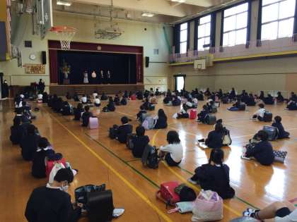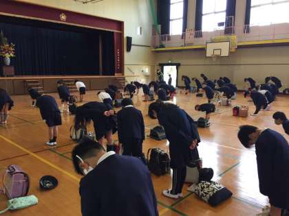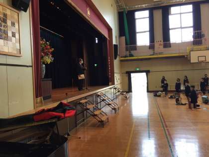 いよいよ令和3年度がスタートしました。8時30分、運動場で待機した児童は講堂へ入りました。少し間隔を開けて学年ごとに整列。新校長先生から新しく赴任した教職員の紹介がありました。そして、始業式。校長先生から、「コロナ禍だけど、元気よく頑張りましょう。」とお話がありました。