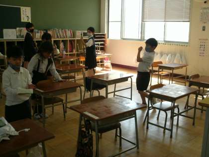 4月20日(火)の様子です。みんな元気に過ごしています。1年生は6年生のお兄さんやお姉さんにいろいろ教えてもらっています。