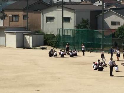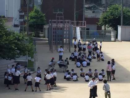 運動場での全校集会(6月7日(月))