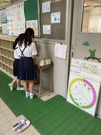 給食委員会は、献立ボードを次の日の献立に書き換えています。