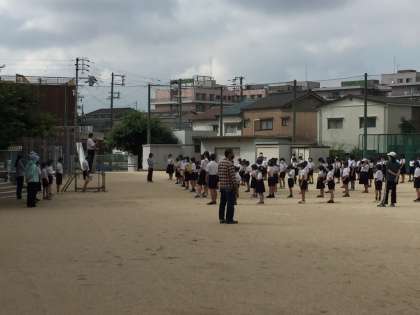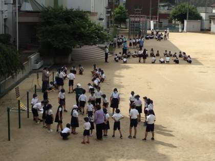 昨夜の大雨があっても、福小学校の運動場の水はけの良さには驚かされます。そんな運動場で、今日は全校集会がありました。始めに校長先生からは「One Team」の話がありました。2019年のラグビーワールドカップでよく使われた言葉です。「ひとりはみんなのために みんなはひとりのために」というラグビーでよく使われる言葉も含めて、学校の中でも使うことができるのではないでしょうか?