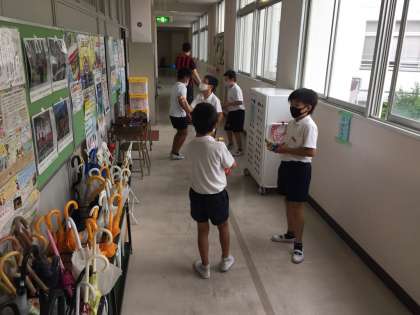 今日は雨で、休み時間は運動場で遊べません。うずうずしている児童が多かったです。自分たちなりに工夫して過ごしていました。職員室前にあるけん玉をする子どもたちです。