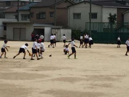 昨日は雨で、運動場で遊ぶこともできず、子どもたちはイライラしていたと思います。今日の1時間目後の休み時間、まだ運動場は赤旗がありつかえません。「いつ遊べるの?」「運動場まだ濡れてるから、もう少し待って」そんなやり取りがあり、2時間目後の休み時間、みんな元気よく外へ出ました。楽しそうです。