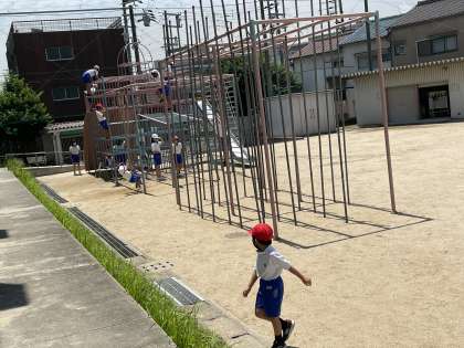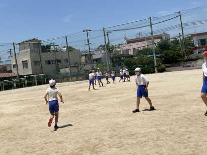 今日の体育は6年生と1年生が合同で50m走をしました。記録をとった後にたてわり班に分かれて一緒に遊びました。暑い中楽しそうに過ごしていました。
