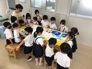 どんな思いで、ころころ ぺったんをしたのかをみんなに発表し、また質問をして作品鑑賞もしました。