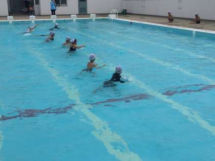しばらく雨が続き、プールの授業が中止となっていましたが、今日は朝からいい天気になり、久しぶりにプールの授業が行われました。1・2年生と5年生がプールに入りました。とても気持ちよさそうに授業を受けています。