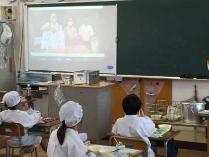 今日の給食では「冬瓜の煮物」が出ました。給食委員会が冬瓜の説明をするためにビデオを制作しました。冬瓜の重さや名前に「冬」がついている説明をしてくれています。3年生では給食を食べながらこのビデオを見て、冬瓜の勉強をしました。