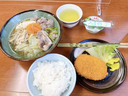 塩焼きの魚はふわふわでとても美味しかったです。その後入浴を済ませて、夜ご飯です。