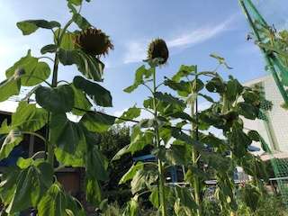 ちなみに、学習園で背が高く伸びている本物のひまわりは、この暑さでややくたびれていますが、とても立派で大きいです。種もかなりの数で取れる日が楽しみです。