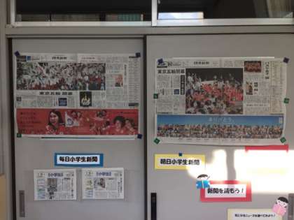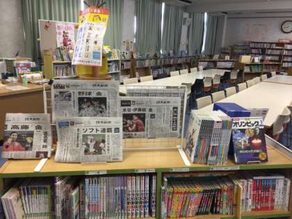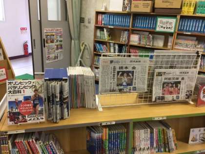 夏休みは2020東京オリンピックが開催され、子どもたちも手に汗握り応援したと思います。図書室の補助員の先生が閉会式が掲載された新聞の掲示をしてくれています。