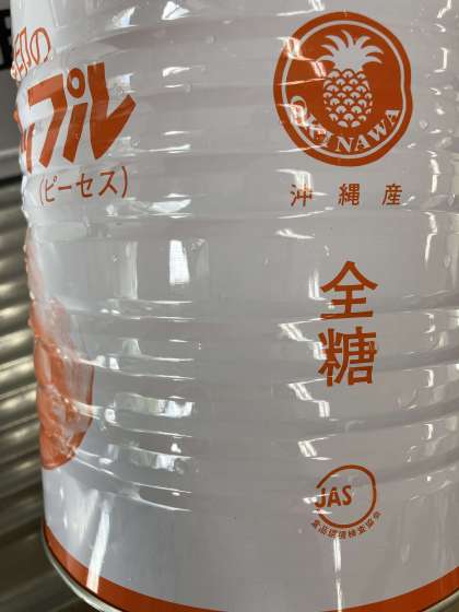 デザートのパインアップル缶は、沖縄産のパインアップルを使用したものです。食べやすい一口サイズにカットされています。酸味がきいていて、おいしいと子どもたちにも好評でした。