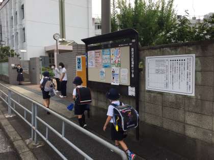 朝の登校風景です。教育実習生が実習を始めて10日が過ぎました。毎朝、児童の登校の様子を見てもらっています。
