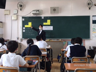 教育実習生が授業をしました。算数です。いつも担任の先生が授業をするので、少し違った空気が流れています。先生の説明、分かったかな?