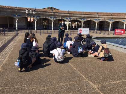 今、学級写真を撮り、いよいよ志摩スペイン村の中に入ります。