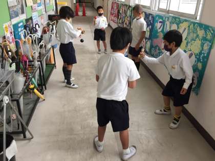 今日は雨なので、運動場では遊ぶことができません。教室でおしゃべりをしたり、ピロティでリバースやチェスをしています。職員室前ではけん玉にいそしむ児童もいます。じょずです。
