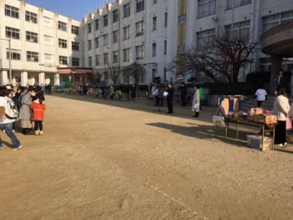 9時より、運動場・講堂を使って、福地域活動協議会はぐくみネットによる「はぐくみふれあいフェスティバル」が開催されました。新型コロナウィルス感染拡大防止の対策を講じ、9時から11時までの2時間の開催でした。講堂で脱出ゲーム、運動場であてもの・コイン落とし・おかしつり・小豆はこび・ストラックアウト・おにぎり・飲み物をPTAの各委員会で運営しました。2年ぶりの開催となります。子どもたちは久しぶりの地域のイベントを楽しみにしていて、それぞれのブースでは長蛇の列となりました。