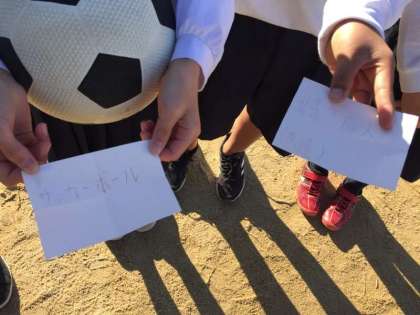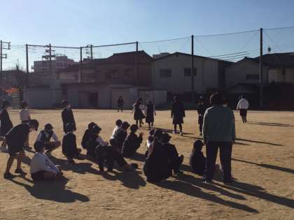 5年生の1時間目です。学級活動の時間です。子どもたちで考えて「借り物競争」を行いましたが、競い合うのではなく、ちゃんとそのもの(人)を持ってきて確認をする、という遊びをしました。みんなニコニコしながら体育倉庫へ歩いて行ったり、それを見てみんなで励ましたり。とてもまったりした時間が流れています。