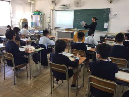 3時間目の外国語(英語)の授業の様子です。今日は西淀中学校から先生方が参観に来られましたが、緊張することなく、いつもの自分たちのペースで授業を行いました。教科書の中で学習した単語を使ってビンゴをしています。少しでもビンゴになりたい友達と、単語を選んで発表する友達との攻防は楽しかったです。