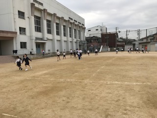 今日も今日とて、かけあし運動。今日の学年は2・4・6年。2時間目後の休み時間に音楽が流れると、子どもたちが運動場に集まり、アップをして走り出します。「子どもは風の子」と言う言葉がぴったりの風景です。