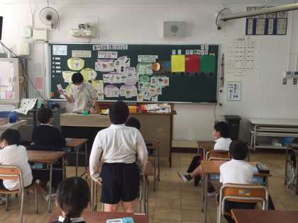 2年生は、5時間目に栄養指導の授業を栄養教諭にしてもらいました。給食で出ている食材を「げんきにはしったりするちからになる」(黄)「からだ(ほね・ち・にく)をつくる」(赤)「からだのちょうしをととのえる」(緑)と分類していきました。普段食べている食材にこの3つの効果があることを初めて知った2年生でした。