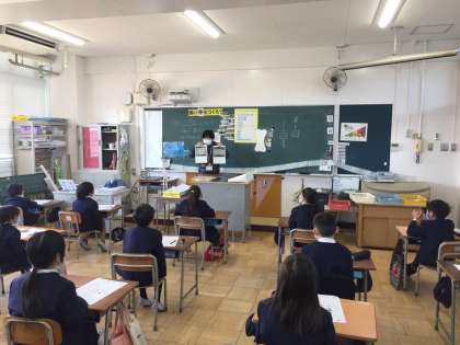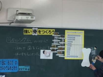 3年生の2時間目です。栄養教諭から「強い骨を作ろう」、カルシウムの話を聞きました。骨は3年で作り替えられるので、「6年生になったら、今の骨はみんな作り替えられるよ。」と話をしてもらうと、「え〜。」「そうなんや。」「すごい」と感想が漏れていました。成長が著しい年ごろです。自分の体について、たくさん学んでほしいです。